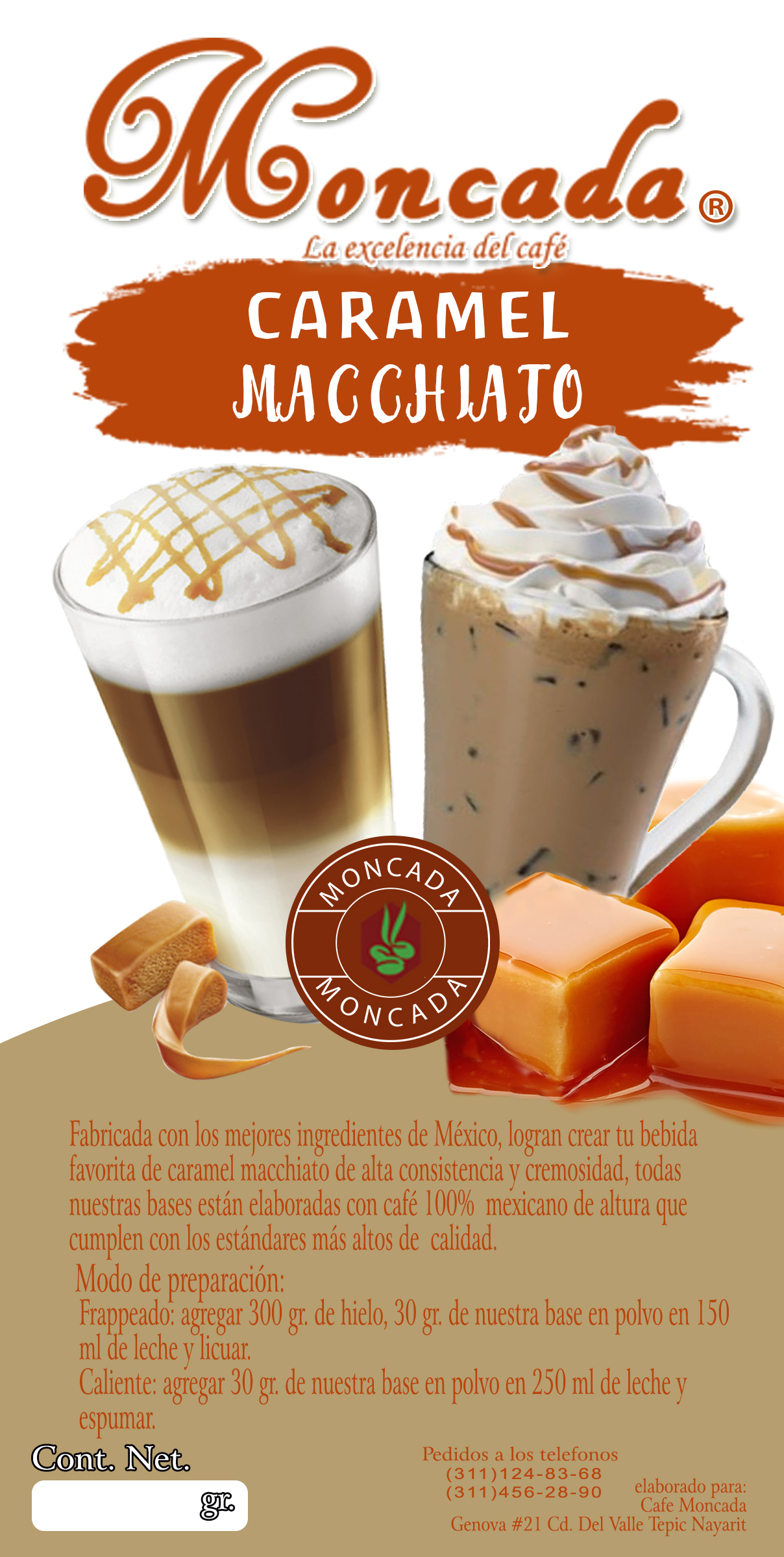 Caramel Macchiato(1.296Kg.)Fabricado con los mejores ingredientes de México, logra crear tu bebida favorita de caramel macchiato de alta consistencia y clamosidad, todas nuestras bases están elaboradas con café 100% mexicano de altura que cumplen con los estándares más altos de calidad. Precio: $# |