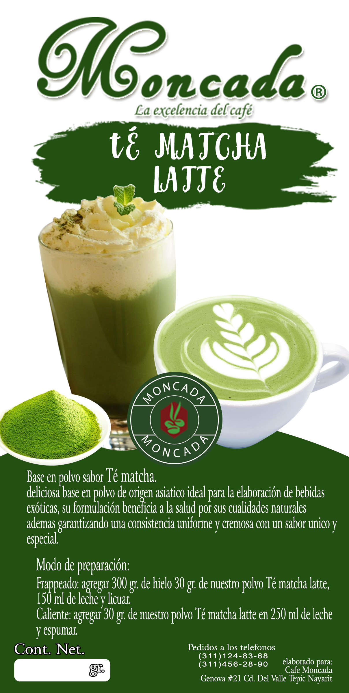 Té Matcha latte(1.296Kg.)Deliciosa base en polvo de origen asiático ideal para la elaboración de bebidas exóticas, su formulación beneficia a la salud por sus cualidades naturales, además garantizando una consistencia uniforme y cremosa con un sabor único y especial. Precio: $# |