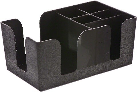 Organizador para barra fabricado en plástico negro con dimensiones de 9” por 6”.Precio: $# Puede hacer esta tarea mucho más fácil, manteniendo diversos accesorios de la barra juntos y de forma práctica. Con seis compartimentos para guardar diversos elementos esenciales tales como servilletas, popotes, agitadores, cubiertos o palillos. |